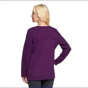 Denim & Co. Novelty Zip Front Jacket and SS T-Shirt Set - Purple - XL