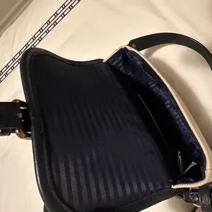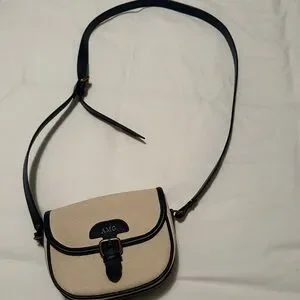 Preppy crossbody perfect for on the go! Blue leather trim with linen bag. See photos for condition.
