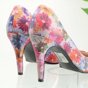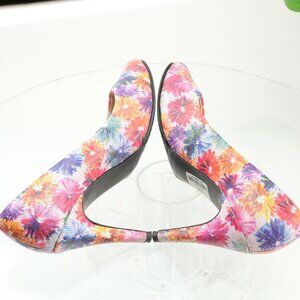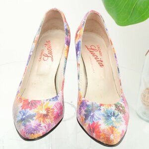Lucita Women's Pump Size 8 Floral Print Red Blue Leather Pointed Heel Dress Shoe