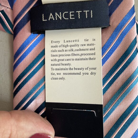 Vintage Lancetti Tie Silk Necktie Diagonal Striped Deadstock New With Tag still on