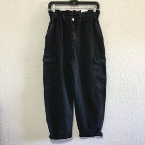 ZARA High Waist Baggy Fit Paper Bag Carrot Leg Ankle Rigid Black Womens 6