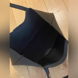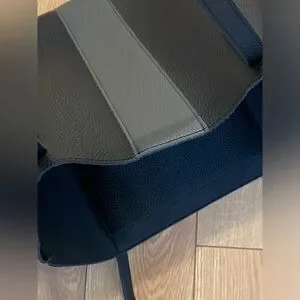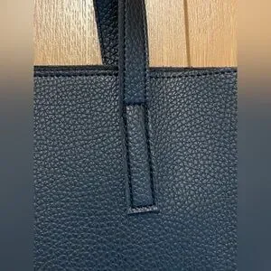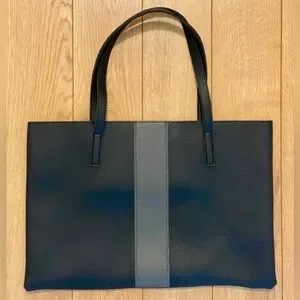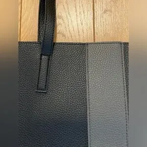 Keywords: Vince Camuto tote bag, black and gray leather bag, everyday tote, laptop bag, stylish leather handbag.
