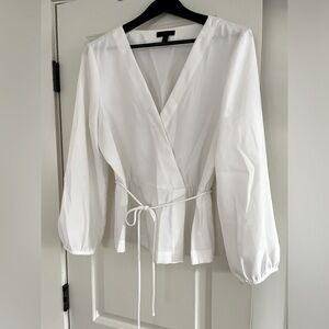 J Crew white crepe faux wrap top.