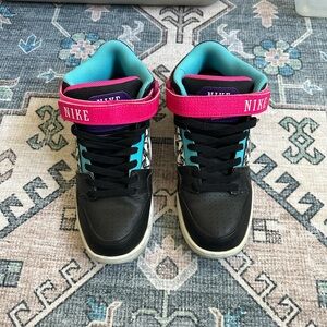 NIKE Air Jordan Mid 2 Black Teal Pink Sneakers. Lightly worn. Has some wear on pink straps. Rare. No box.