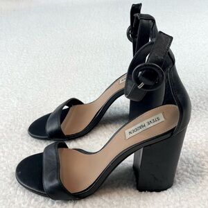 Steve Madden Friday Black Open-Toe Chunky Block Heeled Sandals w/ Ankle Strap