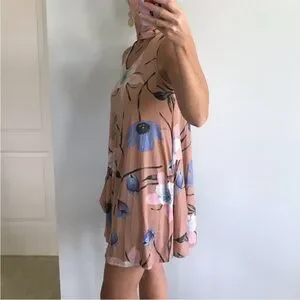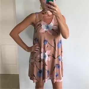 Blush Color Floral Sleeveless Dress. Super cute and easy to wear. Sleeveless. High neck that buttons at the back of the neck. Swing silhouette. 96 polyester 4 spandex. I am modeling size Small. Fit is true to size. New boutique item. #BD30