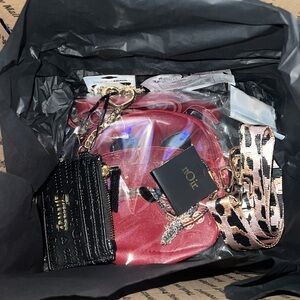 You could receive 1 New or EUC luxury or designer wallet or bag, up to 5 NWT/NWOT items which could include jewelry, hair accessories, home goods,etc. each box is different. All items total retail $80-$180 (in auction must go above $45 for designer )