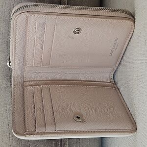 Mothers Day sale today!! Sale price only today! Used condition Authentic mauve and white colored leather wallet. Snap closure and zippered coin pocket. Credit card slots and bill slot pocket.