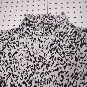 Blouse in good condition with little, has an abstract print to it, slits at cuffs.