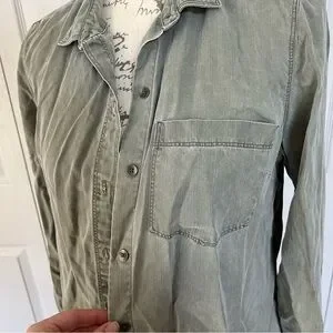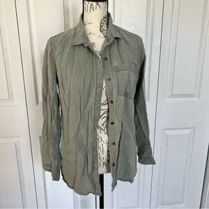 Old Navy Green Khaki type color. Button down top. Wear buttoned or unbuttoned over a tshirt or tank!