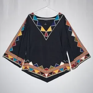 Ashley Stewart Flare Sleeve Top Women 22/24 Multicolor Geometric Stretch Tribal