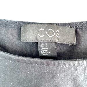 COS Dress Womens US 4 Black Cotton Short Sleeve Shift Bow Draped