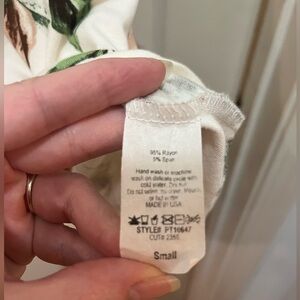 Flower top. With stretchy gathered waist at sides and back. Size small. Very stretchy. See pics for material and brand.