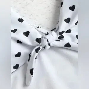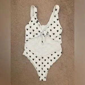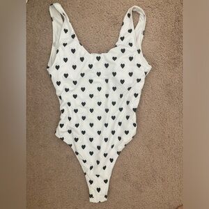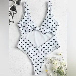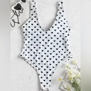 Cute women’s Black and white Heart print one piece monkini swimsuit Large L