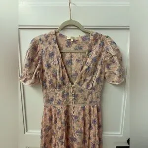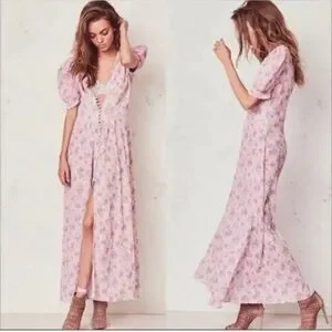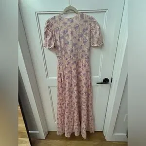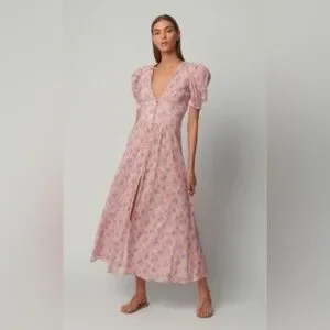 LoveShackFancy Floral Stacy Pink short sleeve Maxi Sz XS orig $475