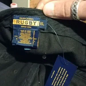 Ralph Lauren Rugby Hat, NWT, XLarge,Black with White Stripes. Old English R,
