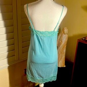 🩵🤍Vol.1 Light Aqua Blue Stretchy Cotton/Rayon Tank. Beautiful stretch lace at bustline and hemline. Adjustable spaghetti straps and longer in length. Super soft and cozy by itself, beneath a blazer or for sleeping too! Excellent condition. Size XL