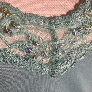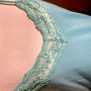 🩵🤍Vol.1 Lt Aqua Blue Stretchy Cotton Spandex Long Tank W/Lace & Sequins Sz XL