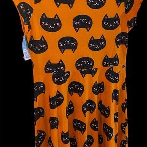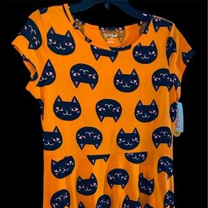 Orange dress with cute kitties.