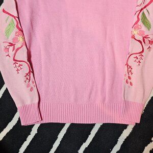 Cherry blossom embroidery on the front & on both sleeves (including a little beetle on the left sleeve). The sleeves are a lighter pink color.