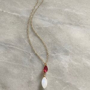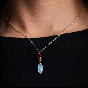 🌙 22K Gold Iridescent Moonstone & Pink Tourmaline Handmade Pendant Necklace
