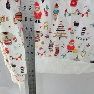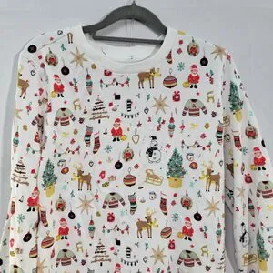 Christmas Style Print Pattern White Sweater Long Sleeves Crew Neck Women's Sz M