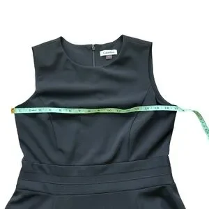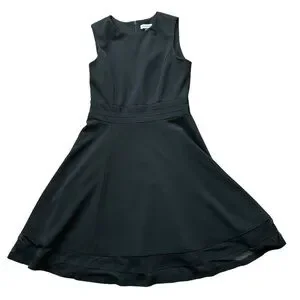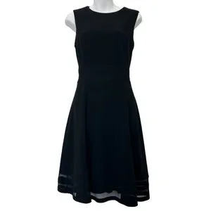 Calvin Klein sleeveless black crepe knit fit flare dress mesh panels size 10