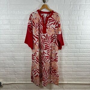 Oscar de la Renta Tropical Print Caftan Maxi Dress Medium