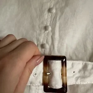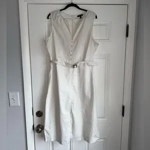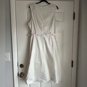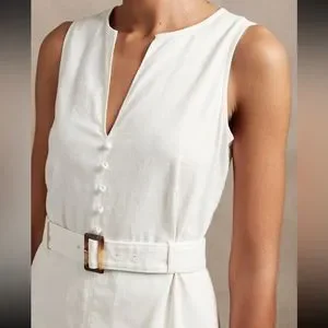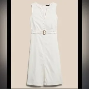 Banana Republic LINEN COTTON SHIFT DRESS sleeveless size 16 off white midi belt