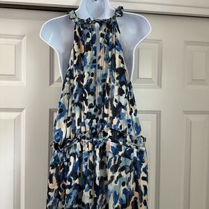 From the Heavenly Creatures Collection. Elliatt's Iridescence maxi dress is crafted of printed georgette. Featuring frill trim, this sleeveless style features a drawstring waist and keyhole back.