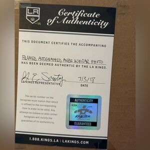 Los Angeles Kings Anze Kopitar autograph picture, hockey with certificate of authenticity