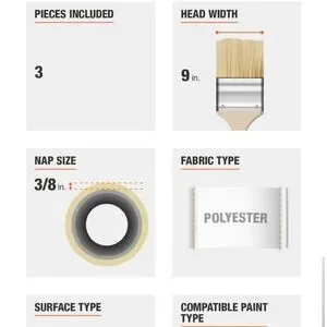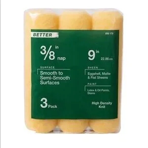 9 in. x 3/8 in. High-Density Polyester Knit Paint Roller Cover (3-Pack) are designed for all-smooth to semi-smooth surfaces. Reusable and can be used with all types of paints and stains. Evenly applies paints and stains. Synthetic lambskin roller covers made with high-density polyester fabric to hold large amounts of paint