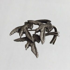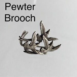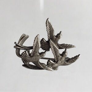 Pewter Flying Swallows Birds Brooch Lapel Pin 1”