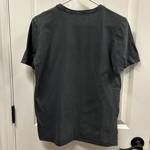 T-shirt is in great used condition. No stains, holes or tears. Color is charcoal gray. Normal wash wear. Item comes from smoke-free home.