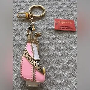 NWT gorgeous and whimsical Piper•K golf bag and clubs ⛳️🏌️♀️pink enamel and metal key ring.