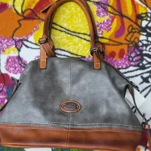 Grey and bronze vegan leather new 2 handle purse with long body strap included. Lightweight and great for all seasons!!!