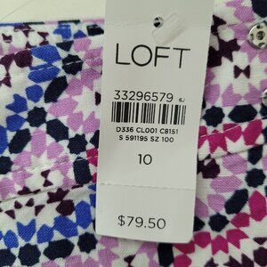 Loft Linen Wrap Skirt Women 10 Pink Blue Mosaic Floral Midi Linen/Viscose New
