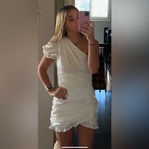 Size M hello Molly dress. Super adorable just have never worn. It still has tags on it. Couldn’t find a photo of the back in the white, but the one selling is white!