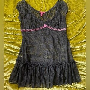 Nana anime Y2K vintage Betsy Johnson black pink sheer lace flower princess top