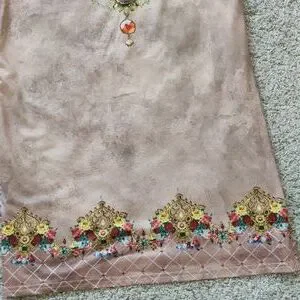 tan with yellow, gold, pink, red flowers. Makes the dress look romantic for a night out.
