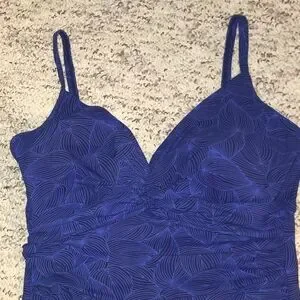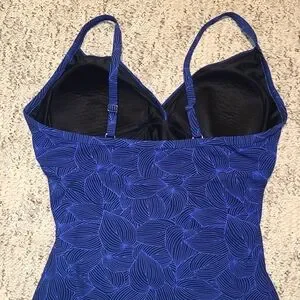 Preloved but in excellent condition. Built in molded cups. Flattering ruching oer stomach.