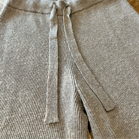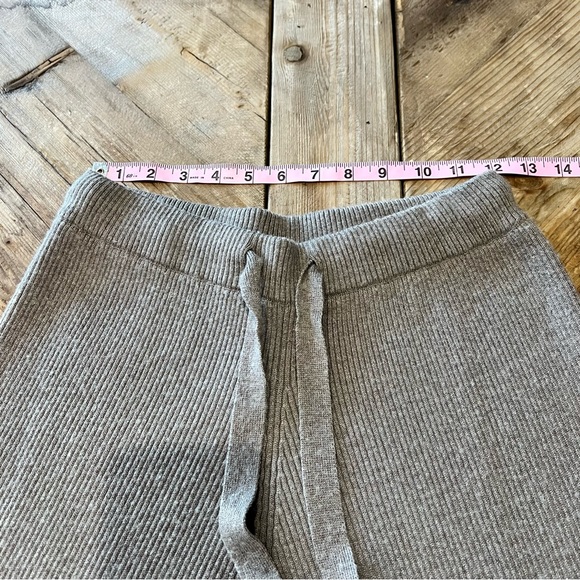 TOPFEELING Ladies Cropped Wide Leg Beige Drawstring Sweater Knit Gaucho Pants