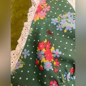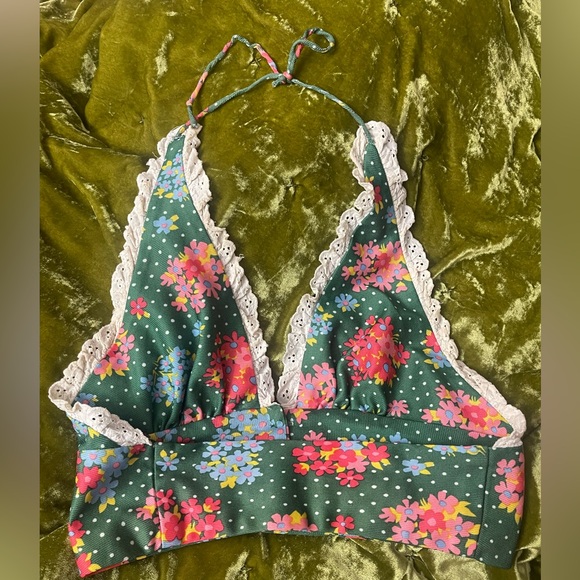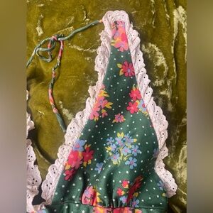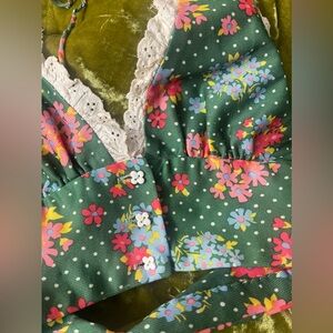 Vintage 1970s floral halter lace button flower green top boho chic
