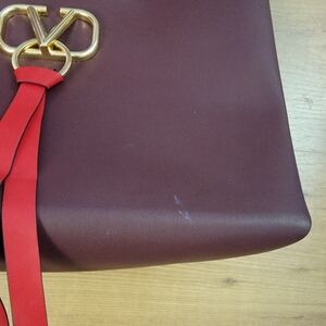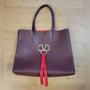 VALENTINO Burgundy Leather V-Ring Tote Bag