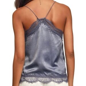 LULUS In the Mood Dusty Blue Satin Lace Cami Top