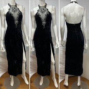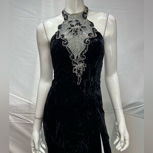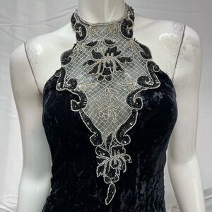 Zum Zum Vintage Black Velvet 90s Sequins Silver Beaded Halter Long 5-6 Dress XS