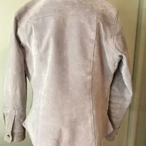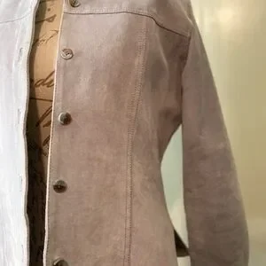 New never used collared button down Size small outter shell genuine leather inner shell satin jacket. All buttons intact and fully functional. No stains no rips.