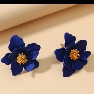 Beautiful Blue 3 Dimensional Flowers with Gold Center Stud Back Earrings. Add a touch of elegance to any outfit.