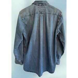 VTG Tommy Hilfiger Blue Button Up Denim Shirt Jacket Mens Size M Slim 44" Chest