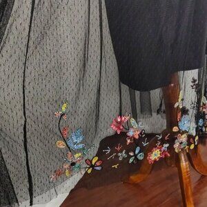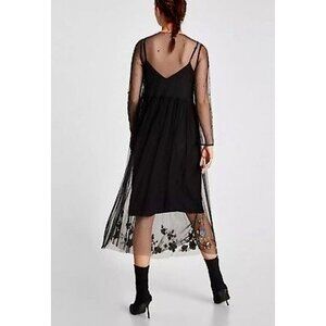 ZARA Floral Beads and Sequins Mesh Sheer Midi Dress - black mesh Plumeti Tulle